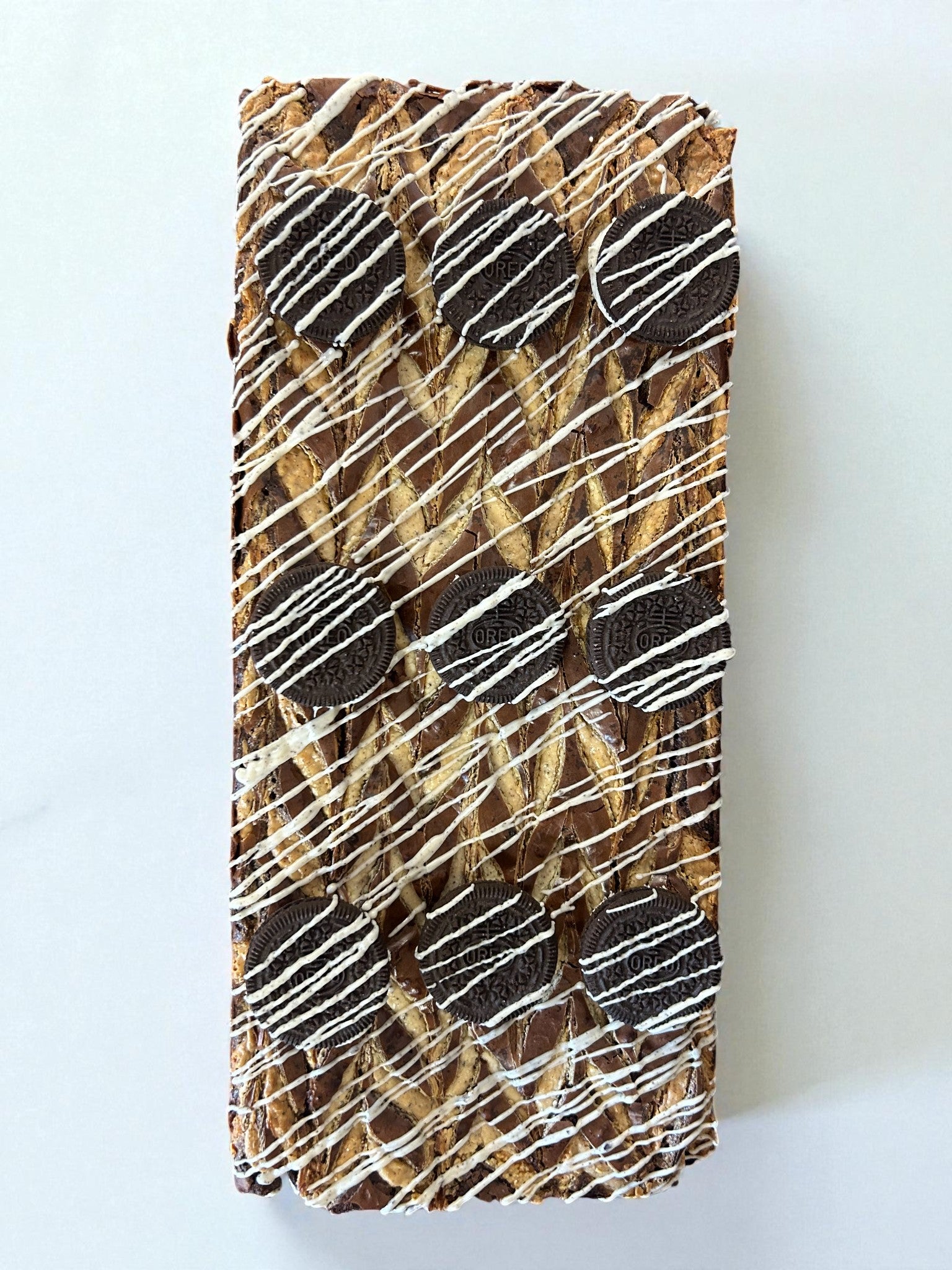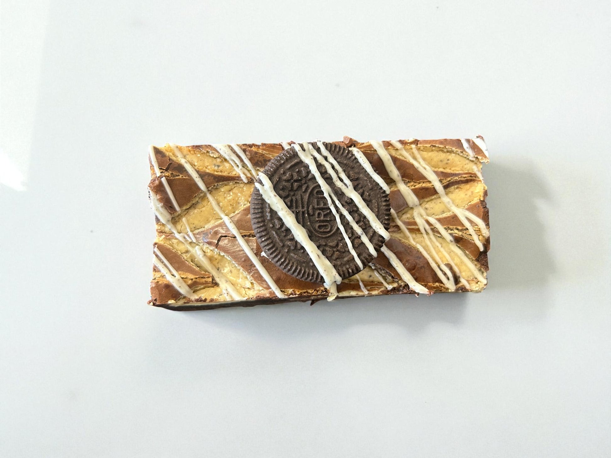Our original brownie base with cookies & cream swirled through and topped with oreo biscuits.